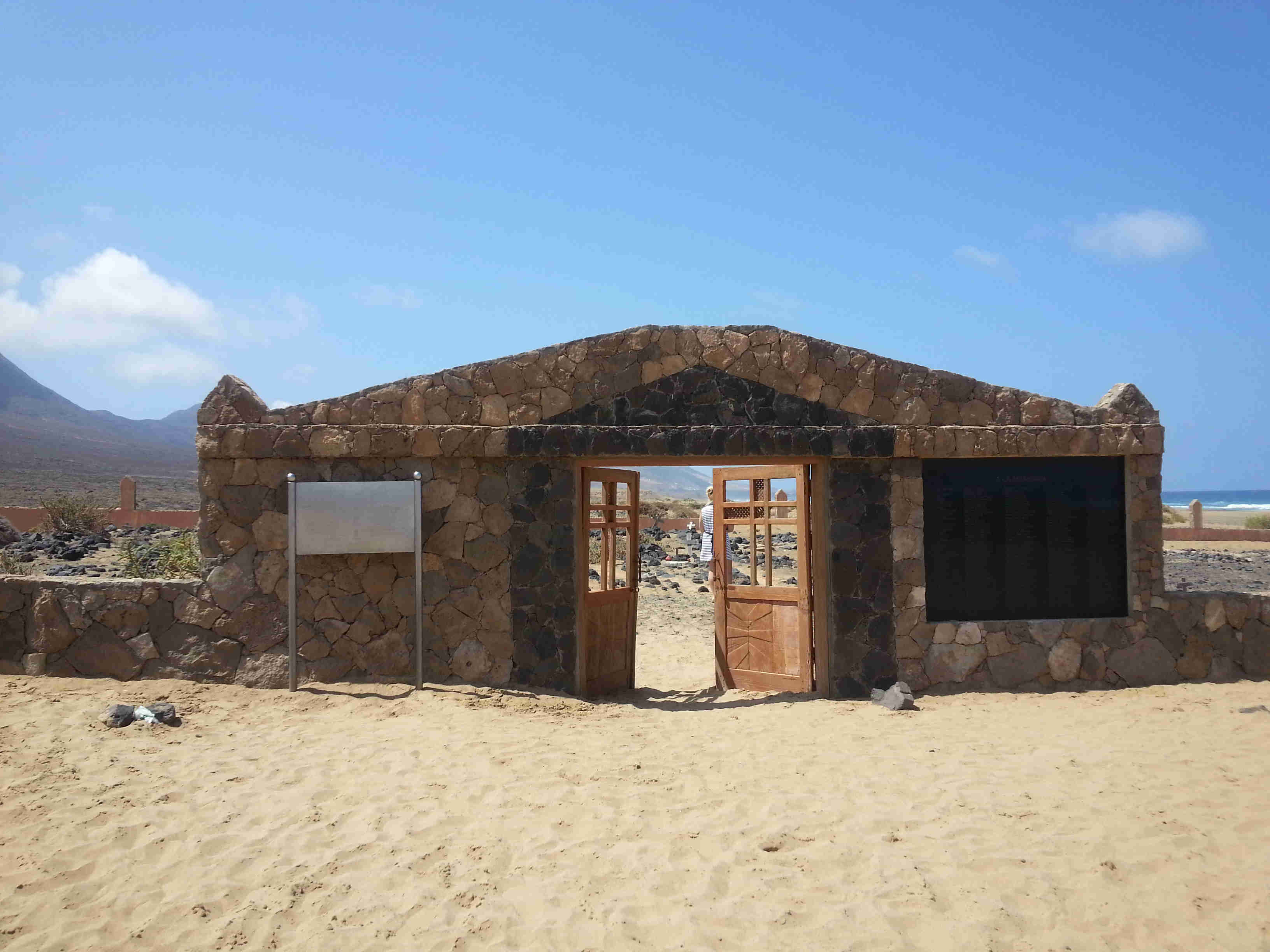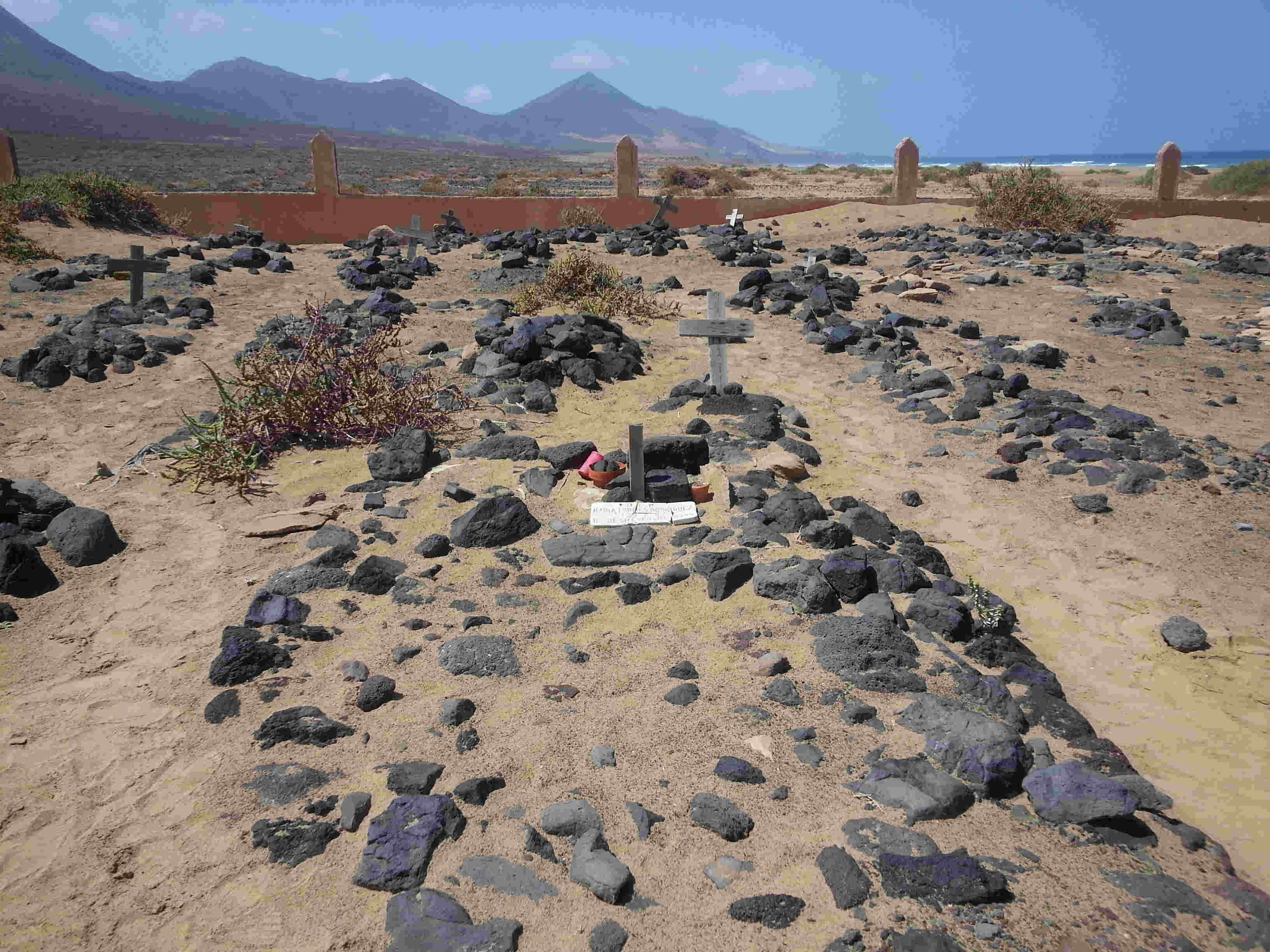 It is said that the road to Cofete and the villa itself was built by locals or prisoners but (I'm still looking for the article again) I read that prisoners (mainly homosexuals - banned in Franco's time) were brought down from Tefia (see below), and worked until they died and buried on the beach, although many sources say the 'graveyard' on the beach was used for locals - having visited this site (very sad experience) I am very sceptical about that as the roads weren't built until perhaps 1940, so how come so many locals ended up so sadly in unmarked 'graves' although there is a plaque at the entrance - please correct me if there's any doubts.